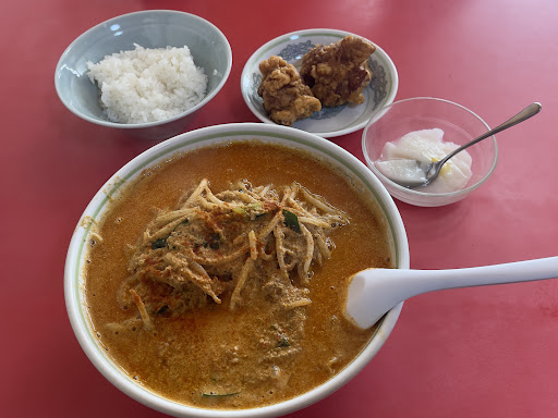 先にご飯と唐揚げが配膳されましたが ご飯は 普通盛りくらいあったと思います。 唐揚げは一個でしたが結構大きめでした。 担々麺が配膳されスープを一口 結構辛めでした。 なぜか、テーブルに置いてある 自家製辣油を掛けて食べると 少し甘く感じましたので 自家製辣油をちょこちょこ掛けながら 食べました。 半分くらいまでは辛さを感じながら 食べたのですが、残り半分くらいから 舌が慣れて来たのか普通にモリモリ 食べれちゃいました。 結局、濃厚スープ飲み干し完食 結構なボリュームなので 普通にお腹いっぱいになります。