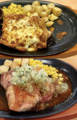 熱々のトロけるチーズのチキンは凄くジューシーで美味しい。値段も安い。 今迄はデミグラスソース別添えだったけれども最近は鉄板に垂らしてる。 こう言うコストダウンのアイデアで...
