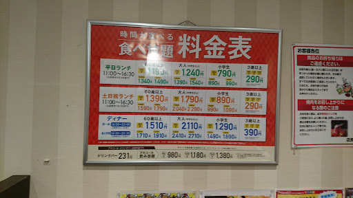 60名の席は確かに確保されてましたが、普通に、それ以外の空いてる席に案内して貰えました。 店長からお詫びとしてか、ドリンクバーはサービスとの事でした。 ホントにサービスなのか、食べ放題の価格に入ってたのかは分かりません。 何とも後味の悪い店です。