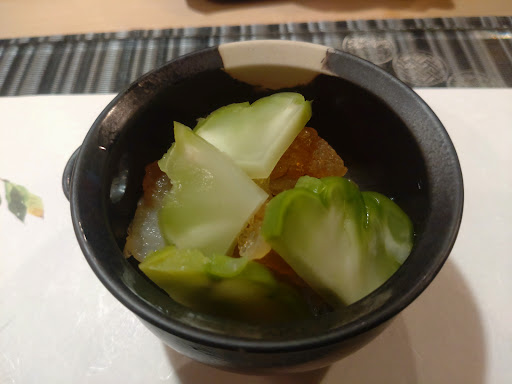 こちらに来る前に、ここを含めて松茸は今年は5回ほど楽しめましたが こちらの土瓶蒸しはツブ貝と鱧を出汁にするようにしていて、旨味の元であるイノシン酸もたっぷりで 松茸もかなり大きくて、たくさんあり 今年食べた土瓶蒸しは3軒でしたけど 1番美味いしく頂けました。 白目むく美味さでしたよ。