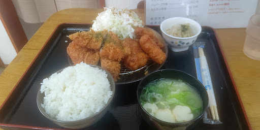 6/10に立寄らせていただきました。 チキンカツ&からあげ定食とトンカツ定食を注文♪両方ご飯大盛りで! ご飯の量は350gとのことで、某弁当チェーン店の大盛りくらいと思ってください! まず、キャベツの量が一般的なお店で提供される量の3倍かそれ以上でした。 チキンカツの方は3枚も入っており、ボリューム満点♪ トンカツの方は肉厚で甘みのあるお肉でした♪ ソースとドレッシングは酸味の強さを感じましたので、和風ドレッシング等あるといいかと思います。 敷地内に、定食屋・鈑金屋・ラーメン屋があり、ラーメン屋さんは旦那さんが経営してるとのことで、ここを調べてみるとすごく美味しそうでした♪ 駐車場ですが定食屋さんと鈑金屋さんの間で、空いて...