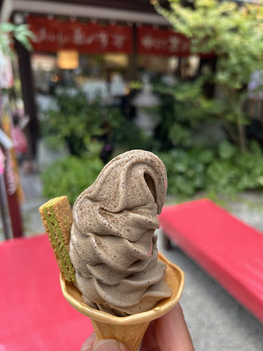 ここに来たらやはり食べなければ!! な、茶葉が見える濃厚抹茶ソフト(380円) ほうじ茶も美味しいですが、抹茶の方が個人的に好みです。 普通の抹茶ソフトでは見られない茶葉が入っていて、煎茶のような風味も加わってとても美味しい(´⚰︎`)💕