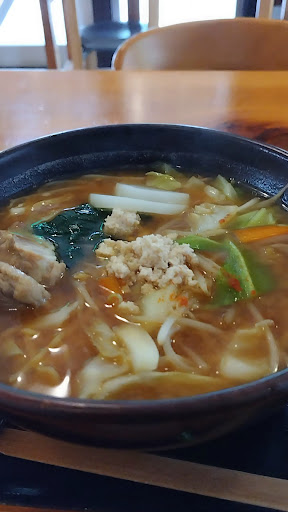 Read more九戸郡洋野町大野の食の館おおのに立ち寄り、洋野町名産の赤鶏ラーメンと半カレーセットランチを1300円の税込で食べて来ました。ラーメンの器が、超デカかったです✨赤鶏ラーメン🍜も半カレーも超めっちゃくっちゃ美味しかったです✨水、お茶はセルフサービスです✨最初にセルフチケットの券売機でチケットを購入して、受付の女性に渡すと10分前後で、結構広い店内に響き渡るスピーカ−で、番号呼び出されます。受付の横で受け取ってから、レンゲ、箸、穴あきレンゲつまようじを取り、七味をラーメン🍜に僕は、入れました。そして席に座り、...