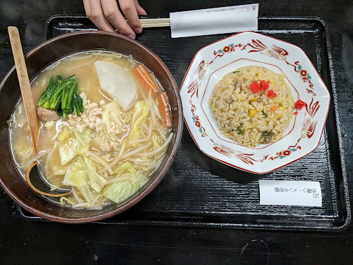 2023/3/18情報番組 GOGOいわて!で紹介されていたので、立ち寄りました。 赤鶏ラーメン半炒飯セット 一芸ラーメン ライス(イナキビ)大を添えて… いただきました。 赤鶏ラーメンは味噌味になるのですが、特徴としては、赤鶏という地鶏系のお肉と、ラーメンとしては、なかなか見ない、しみしみの大根が入っていることです。ほかお野菜も多め。 一芸ラーメンは、シンプルな中華ですが、主にどのように一芸なのかというと、高原野菜の産地であることから、ほうれん草がトッピングされています。その他懐かしいなるととメンマ。チャーシューは薄め。サラッと食べられます。足りない方はサイドメニューから、おにぎりかイナキビ入のごはん(大、小)、チャーハンなどをどうぞ。 単品での半...
