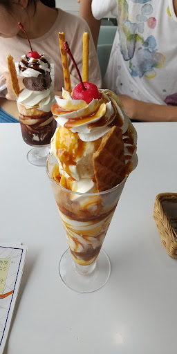 他の席には水が入ったピッチャーがあるけど、私達の卓には無く、人数分の水すら来ない。 注文後暫くしてから水が来たけれどピッチャーが来なくて、様子を見て『ピッチャー頂けますか?』と注文受けた女性に頼むと「ああ、はい···」と、だけど暫く来ない。 金髪の別の店員さんが後から「やだごめんなさいねぇ!」と元気よくピッチャーを持ってきてくれる。 見た感じ金髪の女性は元気で愛想がよかったが、もう一人の女性が文句が多く気だるげで疲れてますな空気が漂っている。他のクチコミに書かれていることも恐らくこの女性の事だろう。 私達が滞在中も2回ほど御客さんが居なくなったテーブルを片付けようとしてパフェのグラスを割っていたし、割ったとき「ああ···」と苛立ったような声を上げていた。