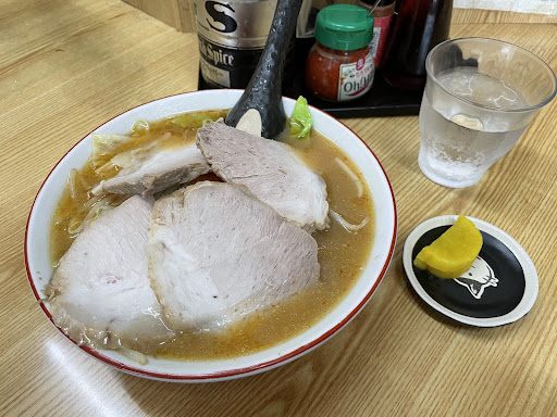 初の来店。 お店の雰囲気は如何にも常連好みのお店、カウンター席がメインです。 小上りは家族連れメイン。 着席して、手打ち味噌チャーシュー(950円)、チャーハン(750円)をオーダー。 先にチャーハンが来たので一口…アオサのかかっていないところを食べるとラードがガッツンと効いてます。脂感が強いですが美味いです。アオサを広げて食べるとラード感が薄まり、刻んだチャーシューがゴロゴロ入って更に美味い。 他の口コミでは厳しい評価が付けられてましたが、私には美味かったです。 んで手打ち味噌チャーシューですが! 感動レベルですよ! スープ啜って「うまっ」って言っちゃいましたし…昔を語る評価も見ますが初来店の私にゃぁ関係ない!美味いものは美味いっ! 普通の味噌ラーメンと比べると辛味はやや強めですが辛味噌程度ですので、辛いのが苦手な方にはややキツイのかと…私は激辛イケル口ですので気にならないです(笑) ニンニクと辛味がパンチ効かせて最高! 肝心の麺ですが…啜って咀嚼したら…あら不思議!メチャクチャ甘みを感じる…スープの一体感もあり箸が止まりませんでした! お待ちかねのチャーシュー、こちらも厳しい評価してる方がいましたが…いやいや!しっかり下味が付いてましたし、スープとの相性は最高ですよ!写真でチャーシューを見る限りはギュチギュチのチャーシューかな?いえいえ…シットリ柔らかい肉厚チャーシューですよ! 久々に感動レベルの味噌ラーメンでした。 美味しかったですしまた必ず行きます。 女将さんの愛想もメチ...