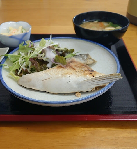 以前から何度か訪問しようとしてましたが、やっと今日(2025年4/18)訪問できました。メニューの多さと低価格で人気のある定食屋さんです。席に座るとすぐに店員さんが注文を取りに来てくれます。水はテーブルに置いてあるコップにセルフです。今日は刺身定食を注文。注文して短時間で提供されます。ご飯はやや多め。この日の刺身はタコとサーモンとたぶんカンパチの3点盛り。小鉢にはイカリングとイカゲソとサバのフライ。大きめのたくあんとお味噌汁が付いて880円でした。 他にも美味しそうなメニューがたくさんあったので、しばらく通い詰めて制覇しようと思います。 ちなみに日曜はカレーの日で通常680円のチキンカレーライス・サラダ付きが500円とのことです。