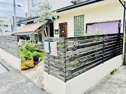 駐車場はお店の前の道路を挟んだ反対側に3台ありました。 駐車場が空いてるにも関わらず満席でしたのでご近所の方です賑わっている様です。 店内が満席でしたが運良く表のテラス席(?)が1席空いていたので運良く座れました。 車通りが多いから最初は気になりましたが、座ってみると目隠しのフェンスで全く気にならなく、むしろ風が吹いて気持ち良いので特等席です。