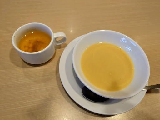 スープバーのコーンとタマゴのスープが味は美味しいけどタマゴが少なくて寂しかったのだけが残念でしたが、日替わりランチにフランスパン、ドリンクバー←(クーポン使ってお安くなりました。)スープバーにビールとレモン酎ハイで...