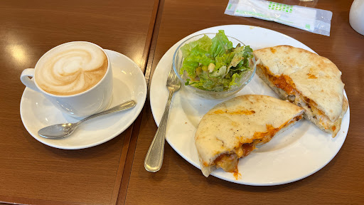 Read more食べ物の軽食も、コーヒーもとても美味しいです。なにより店主の方がとても感じか良く、接客も丁寧です。一人でやっているのに、てきぱきとされていて、注文もそれほど長く待つこともありません。常連の方が多いお店です。常連さんへのあいさつはされていますが、長く話をされるでもなく、それでいて常連さんも大事にされていることがよく伝わりました。常連さんが多いと、入りにくいと感じる方も居るかもしれませんが、そんな雰囲気は全くなく、とてもおすすめです。 注文したのはチキンチーズフォカッチャとホットのカフェオレです。写真を撮るのを忘れて、サラダを一口食べてしまった写真です😅 駐車場があること、電停のすぐそばであることも利用しやすくて良いです。