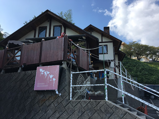 Read more土曜日のランチ時に家族4人で寄らせてもらいました。ハンバーグランチ900円と広島牛ステーキコース2000円。以外に空いていて突然寄ったのですが、大丈夫でした。祇園イオン近くの、高台にあり気持ち良い場所です。ディズニーとカープのグッズが沢山で賑やかなコテージといった感じです。 ランチは、スープ(かぼちゃ)サラダ、パン1個、小ぶりなハンバーグのランチセットは、デミグラスソースも以外にあっさりでマッシュポテトにハムや玉ねぎが入っていました。 コースは、ベーコンで巻いたお餅、ホッケの天ぷら、サーモンの生春巻きの3種前菜に、かぼちゃスープ、パン1個、ほぼ食べ終えた所で白ご飯もありますよって、、、 もう少し早く聞いてもらえないかな〜(>人<;)それでも、白ご飯はもらって広島牛ステーキ5切れ、醤油わさびでいただきました。(タレか食べ方がもう少し工夫があれば面白いのになぁ〜)付けえは、オクラ3本です。最後に、コーヒーと抹茶、かぼちゃのモンブランで仕上げです。ゆったりのんびりしたラ...