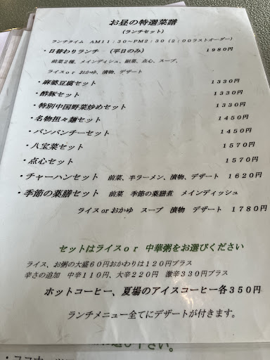 料理はランチにしては値段はそこそこでしたが、小さな小鉢なんかも付いていて、高いなと思わせないから上手だなと。 麻婆豆腐が美味しかったので料理に対しては評価は高めです。なにか特徴があるわけでもなく、無難に美味しいって感じです。ご年配も多かったから、わざと万人受けを狙っての味付けなのかもしれません。