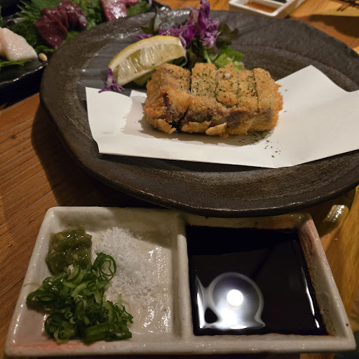 Read more美味しく頂きました。 電話で予約して、行きました。 後からのお客様は満席を言われていましたし、団体のお客様がいらしたようで、賑わっているお店だと感じました。 2人で行って、120分飲み放題にしましたが、90分でも良かったかと思いました。 レンジ使用だと思いますが、焼酎お湯割りは熱すぎてカップが持てなくて、フーフーすすって飲みました。これが本来のお湯割りと言うものなのか分かりませんが、アルコール飛んでいます。一度熱々で飲めない事を言いましたが、次も熱々でカップが持てません。レンジで温めるのも、加減が大切だと思います。 初めてのお店でしたから、料理も何をどうして食べるのか、これは何なのか説明が欲しかったです。質問したら、ソースだと説明されましたが、お醤油でした。馬刺しとレバーに出された1皿のごま油に塩が入っていなかったので伝えたら、もう1皿の量とは違い、凄い塩が入っていて塩辛くて付けて食べれませんでした。いちいち言ったから、気を悪くされたのかと思ってしまいました。 写真以外のお料理も色々注文して、美味しく頂きま...