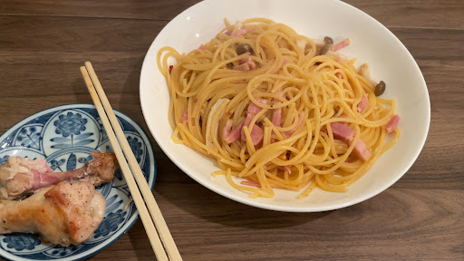 Read moreこの日は夜中にお腹が減ってしまい彷徨っていました…真っ暗な通りに光がこぼれている喫茶店を発見🕺🏻恐る恐る入ってみると明るい女性が迎えてくれました…金曜と土曜は18時〜夜の喫茶店ををやっているみたいです。この日はペペロンチーノと付け合わせでチキン、アイスコーヒー、オマケで焼き立てのパンを出して頂きました。とても気さくな店員さんに優しく会話もして頂き心、お腹共に満たされてお店を後にしました。PayPayも使えます。是非また行きたいです😋