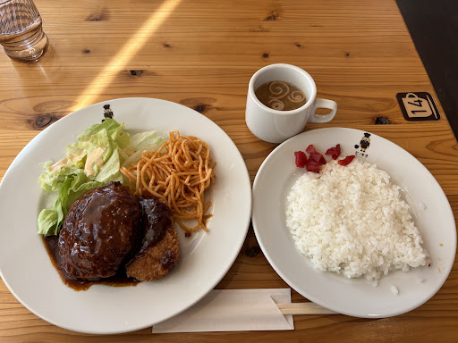 Read moreもう二度と行かない!まず初めにこの言葉しかない。そもそも『ピノキオ』を知ったのは岡山のイオンモール店を知って、ここも間違いないと思ったのがきっかけです。 他のレビューにもありますが、セルフサービスであるが水コップは逆さに慣れてなく衛生管理が全体的になっていない。 注文はQRですが、お客様に手間をかけ、スタッフは楽をするのが全てにおいて垣間見えます。ホールスタッフは腕組みをしながらボーっと突っ立てる有様。ただ、メニュー表を持って『ご注文はQRからお願いまぁす』と笑顔もなく、『ありがとうございます』もなく、オススメのメニューの案内もない。 実際に中高年層のお客様からQR注文の質問が数件見られた。『勝手にどうぞ』的な対応に怒りしかない。 注文したメニューが通ってるのかすら分からないから、不安になる。 注文したものは日替わり定食(ハンバーグ&目玉焼き)、ホットケーキ、それぞれにコーヒーセットで2310円。 ホットケーキはどう考えても温めて提供しただけ?レベルのもので、しかも小さい。 ハンバーグはこれこそ冷凍食品の食感と臭み。米は古いもの?と思われるバサバサ感。 卵は唯一、お店で焼いたもの。これは店とは呼べない。誰でも店できるやん!のレベルです。最低最悪、二度と行かない、後...