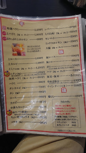 Read more知り合いに美味しいけどちょっと高いと聞いて行きました。 一人前の量が少し少な目なので結果的に少し高めになりました。でも肉はドレも美味しく、特に上タンは柔らかでジューシー、臭みも全くなく抜群の美味しさでした❗️美味しさに負けて四人前も食べてしまいました・・・ 表の看板に中華そばと書いてあったので、締めのラーメンもここでいただきました。焼いた鶏ガラベース(?)に豚骨のだしが加わって、麺は長浜ラーメンのような細くて堅めの麺。意外にあっさりで焼き肉の後で...