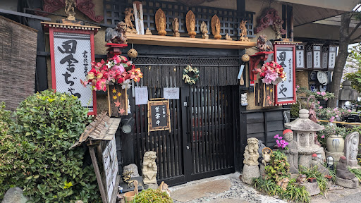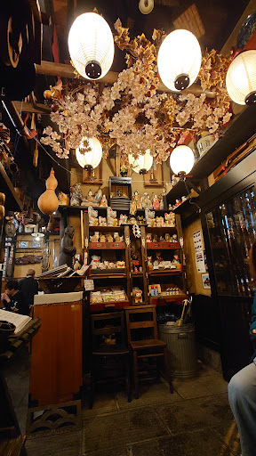 続いてその意匠に見入ってしまいました。民芸調に塗られたむき出しの柱や梁に、とにかく色んな古美術系の物を飾り付けてあります。面白くて雰囲気があって、とても楽しい空間になっています。あれだけの物がありながら、ひとつひとつの派手さに走らずに並べて全体でしっくりきているところがすごいなぁと感じました。