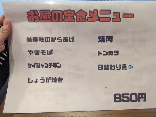 Read more14時入店。夜まで通し営業してる感じです。 レトロな店内にバーのようなカウンター席。 大好きな掘りごたつ席に座りました。 ランチメニューもシンプル。 日替わり魚はカレイの唐揚げだったみたいですが売り切れでした。からあげを注文。 胸肉唐揚げが5つと、この日はカレースープ?だったのでご飯にかけて食べました(笑) 副菜も沢山あるのでお腹一杯になりました。 2階にお店があるので足が弱い方は大変ですが、ゆっくり静かにランチし...