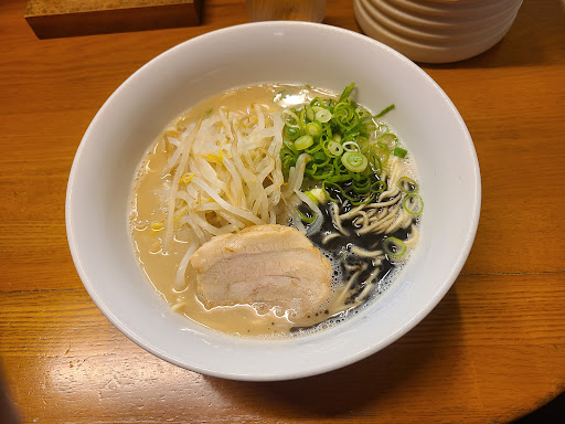 別の日に塩とんこつ黒ニンニクを注文 塩よりは豚骨強め、まろやかなコク ニンニクの香る黒マー油と分かれているのだが、全く別の味わい それが食べ進めていくうちに混じり合い、見事な協調具合となる