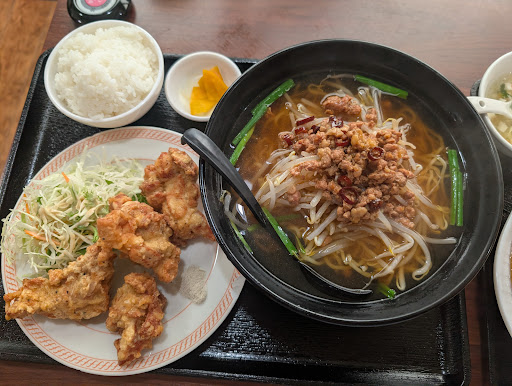 初めて伺いました。地元の中華料理店って感じの佇まいで、中に入るとテーブル席が沢山あります。ファミレスのように区切ってあるので、お子様連れでも気兼ね無く過ごせるかと思います。まず驚いたのがメニューの多さ!単品や定食など、選ぶのにかなり時間がかかるくらいの多さです!!特に平日のランチメニューはお安い価格で沢山の定食から選べます。平日以外でも定食は沢山用意されているので、今回も迷いに迷って「天津飯定食」と「台湾ラーメン定食」をチョイス。 こちらのお店はボリュームが凄いことでも人気らしく、今回お願いした定食もそれぞれ唐揚げが四つも付いてきましたので、一緒に来た子供にはその唐揚げと台湾ラーメン定食に付いてきたライスだけで十分でした(笑) お味もしっかりとしていて【The町中華】な感じで美味しかったです♪特に唐揚げは好みの味でした。 ランチタイムはセルフサービスでコーヒーも頂けるので、お得感がありますね☆ スタッフさんも笑顔が素敵で素敵な時間が過ごせました。 目指せメニュー全制覇!ごちそうさ...