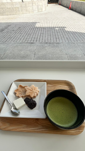 Read moreNice place for a coffee stop during a visit to the Hiroshima Atomic Bomb Museum, just a few minutes walk away. The interior is very beautiful, lots of light coming in through big windows. The staff are also very nice. I ordered the menu with Matcha tea and a snack for 800¥. The tea was okay but a little clumpy towards the end. The snack was very disappointing. Just a block of cream cheese, some azuki bean paste and a maple leaf shaped “waffle cone”. I was expecting Hiroshima momiji manju from the picture, so I was pretty...