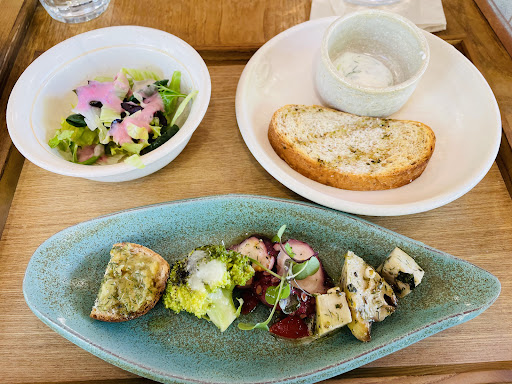 駐車場に入ったら車がいっぱいでしたが、すぐに店の方が出てきてくれて第2駐車場の場所を教えてくれました。 お店の雰囲気もとても良かったです。 料理は、聞いたことも見たこともないものばかり! ランチセットのメインは“ムサカ”を選択。 ラザニアのような感じ? ミートソースとホワイトソースが重なった中に、ナスやじゃがいもなどが入っていて美味し〜い! 前菜、サラダ、どれも本当に美味しかったです。 量も「少ないかな?」と最初思いましたが、メインがたっぷりあったのでお腹いっぱいになりました。