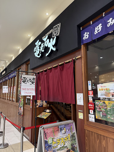 場所はフジグランというショッピングモールの1階の入り口から入ってすぐのところにあります。ホールの女性に人数と座敷でお願いしたい旨を伝えてお店の外にある待合用の椅子で待ちました。家族連れで人数が多かったのと座敷指定だったので私たちよりも後に来られた方をカウンターだったりテーブル席に案内される際に、その都度順番入れ替わりますがよろしいでしょうか?的なことを言いに来てくれました。