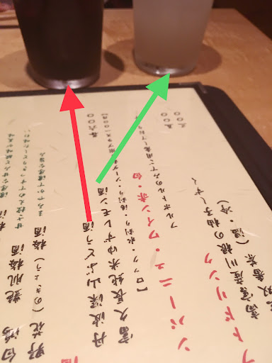 席に着き、 オススメの肴を聴きながら それを頼み、 山葡萄酒? ワインでは無い! と 柚子レモン酒? というモノを頼んだ。 口をつけると …ジュースの様に飲める。 美味いけど… この飲み方をすると 酔っ払ってしまうので、自制することの出来る人向けの酒ですね。