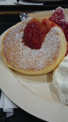 Read moreずっと気になってたパンケーキ。 ストロベリーパンケーキにしました! 並んでる間はパンケーキ3つと思ってたけど、実物をみてビビってしまって2個に。 出来上がりまでに30分ほどかかると言われたけど、経験済みというか理解済み。待てないなら、どこのお店のふわふわパンケーキも無理と思った方がいい。 いや、それにしても美味しい!! イチゴ、イチゴソースだけでなく、生クリームがたっぷりでめちゃ美味い!! レジと焼け待ちに40分、食べるのは10分以外。儚いものです。