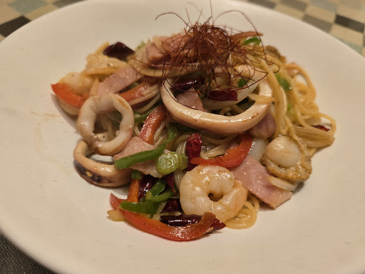 妻は「若鳥のぱりぱり焼きおろししょうゆ」をオーダー マジぱりぱり でも中のお肉はジューシー ニンニクチップ多めで おろし醤油の配合も絶妙だ。 シェアしてボクも頂きましたが、 ちゃんとしたプロのお料理でしたわ。 語彙力無いから伝わるか分かんないですが、 お店で出る料理でも、