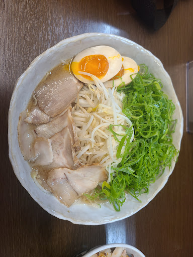 Read more18時過ぎに来店。お客さんが1人も居なくて少し不安な中入店。 入口で食券を購入して席に座るシステム。 とにかくラーメンが食べたかったので豚骨醤油ラーメンの全部乗せ(900円)を購入。 一緒に行ってた人は本日のラーメンセット(1000円)を注文。本日の…だから日替わりなのでしょうか。。。 無料の味付けモヤシを食べながら待つ事15分位だったかな?店員さんが1人で作られてるのでラーメン店にしては少々遅いかな💦 ラーメンが運ばれて来て全部乗せ→モヤシ、ネギ、煮卵付きで900円かぁ😰 …が、ラーメンセット‼‼‼セット内容が【通常ラーメン・小鉢2品・大葉巻きアジフライ+替え玉1玉とご飯おかわり1回無料付き‼‼‼】 100円しか違わないならラーメンセットにするべきだったな、、、と後悔しました(T^T) ラーメンは広島ラーメンの豚骨醤油ラーメンで普通に美味しいですが少し薄めの味なので卓上のラーメンダシを足して食べました♡ ラーメンセットの大葉巻きアジフライを貰っで食べましたが揚げたてで美味しい😍😍 付属のタレがまた甘辛くアジフライに合う‼‼‼‼ ラーメンセットのコスパの良さも含めて☆3.8です( * ॑꒳...