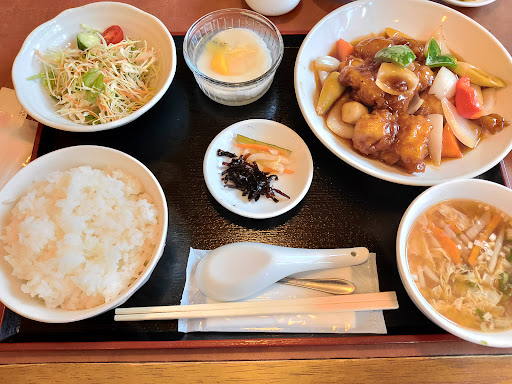 目当ての店がお休みだったので、駐車場があったこともあり、目に付いた「華」さんに入店。 基本、初めての中華屋は名物料理が無い場合は酢豚定食を食べることにしているので、酢豚定食ご飯大盛りをオーダー。 息子は、五目チャーハン(650円)と唐揚げ(750円)をオーダー。 酢豚定食は1160円でご飯大盛りは220円(会計の金額から逆算)と立地の割に料金高め。 また、大盛りを頼んだ時に何円プラスになるか教えて欲しかった。むちゃな金額じゃ無い限り頼むのだけど、会計時に知ってると知らないじゃ違う気がする。 定食のライナップはスープ、サラダ、ライス、漬物(ザーサイならなお良し)、酢豚。 まず、スープは鶏ガラベースの醤油味で見た目は悪くなるが野菜のこっぱが入っており食感や味がプラスされ美味しい。 サラダは普通。漬物は大根の醤油漬けのようなのが良かった。 ご飯の硬さも問題なし。 酢豚は黒酢で味も良く、最近食べた酢豚の中では、ピカイチだった。 そもそも、甘酢より黒酢派という事もあるが、酸味、甘味もちょうど良く、豚肉も柔らかく大満足でした。 息子のチャーハンを少しもらったのだけど、パラパラ系ではなく、ふっくらした食感。 味は薄味で、少し甘さを感じたのだけどその甘さが邪魔でした。 私的には、もう少しパンチの効いた味が好み。 大きめなエビが一尾入っており、息子はそれが美味しかったとのこと。 そのエビをチャーハンの真ん中に盛り付ければ良いのにと思った。 唐揚げは量も多く美味しかった。 食感はしっとりとしているが、鶏肉は柔らかく下味もしっかりしている。 とにかく鶏肉の柔らかさが際立つ。 酢豚も含め、肉の火入れや処理が抜群に良いと感じます。 しかし、町中華としては少し高い。 少しコスパが悪く感じられたので、迷いに迷って星3で。 コスパの良さは宇品の「極楽亭」の中華弁当がここ最近では、1番良かったなーと...