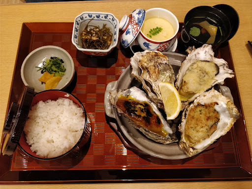 Food was really tasty and value for money for the quality and quantity. The anago grilled eel rice box set with tempura, steamed egg, Sashimi & soup was ¥2800, basic tempura and sashimi set ¥1380, seasonal oyster set for 2 was only ¥5500 with over 20 oysters cooked differently. The menu was totally in Japanese but there’s many photos so you can order easily. The staff speak mainly Japanese but they tried to communicate in English with us. Very helpful. Wish they had the oyster gratin as a main menu item. It was so good! Unfortunately we can’t order it...