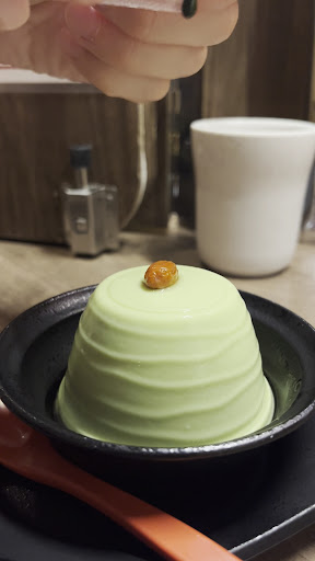 We got an almond milk matcha pannacotta to end the meal, so simple but sooo good.