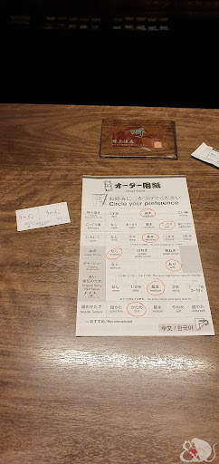 Long story short, staffs didn't speak any English so we did figure out how it worked 🤣. Step 1. You get to the machine. Insert money. Choose what you want. We didn't figure that much so we try with the basic option, a bowl of Ramen. The machine will print out the ticket for you. There are many other add on options to choose for example extra noodles, boiled egg, more meat... Step 2. Find a seat. On each personal counter there's a personalized your Ramen slip in Japanese. The staffs will change it to English to you. For example I don't like spring onions so there's an option on the slip if you want your Ramen without /with/ with extra onions. Step 3. Press the button on the table. The staff will come to collect the slip and you will have your Ramen in no time. Taste is great, but it's quite fattier than other Ramen places that we have tried especially the meat. So if you like something lean and less fat. This is not for you. The option of refill is available you just need to put it on the slip and press the button on the table again. Also beer and matcha pudding dessert...