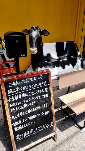 お店の前に自転車を停めたら、女性店員さんが出て来て『駐輪場はあちらです』と西側のスペースに案内されました。 行ってみると確かに地面に表示が! 『こんなん、わからんわい(^_^;)』と思いつつ入店し券売機へ。