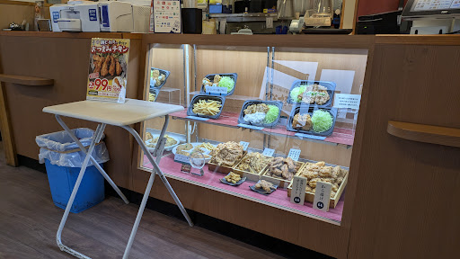 ・駐車場あり ・店内飲食、持ち帰り(テイクアウト)の両方可能 ・僕は持ち帰りでしか利用したことがない ・僕みたいな人見知りの対人でのやりとりが苦手なタイプにありがたい無人のタブレットで注文できる ・持ち帰り(テイクアウト)の手順としては以下 1、店舗にいき駐車場に車をとめる 2、入って右手にある持ち帰り専用のタブレットを操作する。2台設置されている 3、持ち帰り専用タブレットなのでメニューがそのまま表示されている。持ち帰りたいもの(弁当とか唐揚げ単品とか)をタップしてカートにいれていく 4、最後はレジ袋(有料)いるかどうか選択して確定する 5、確定したらタブレットに「10」みたいな番号が表示される 6、その番号をタブレットからして左手(入口からだと正面)にあるレジにいる方に言う。まぁ僕は毎回レジの店員から「はい、持ち帰り10番の方~。お会計しますね」って感じで先に言ってくれる 7、そこで対人での会計。セルフレジとかではない。クレジットとか現金とか。僕はいつもクレカ。 8、レシートを貰い、入口付近にある椅子に座って完成するまで待つ。店内飲食だと店員とかと会話せず、入ってすぐ勝手に空いている席に座っていいスタイルなので、もし待っている間に人がきたら「あれ?こいつ初心者なんかな。別に店員に呼ばれんでも勝手に空いている席座ってええのにな。バカみたいにまってらー」みたいに思われてないかちょっとドキドキ。おっと人の気うかがいすぎの人見知り発動。 9、完成したら呼ばれるのでレジにて受け取る。さっき会計はしているので簡単な説明(傾きやすくなっているのでお気を付けください的な)をうけて無事終わり。ウッキウキの気持ちを抑えて安全運転で帰宅する ・いっそのこと会計も専用のセルフレジとかでできて商品の受け取りだけ人との対面になってくれるのが人見知りの僕にはありがたいけどまぁタブレットがあるだけまし。 ・唐揚げは言わずもがな美味しい。 ・僕みたいな人見知りは、家でゆっくりお酒でも飲みつつテレビとかYouTubeとかゲームしつつ食べるのが最高。持ち帰り万歳。 ・正直どれも美味しいんだけど、いぶりがっこタルタルはあんまりだった。美味しいには美味しいけど甘とろダレもも、ハニーマスタードとかと比べると好みじゃ...