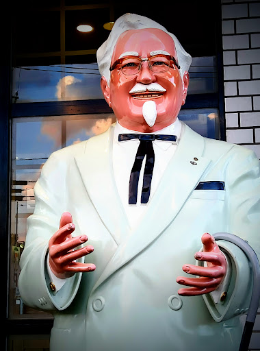 ケンタッキーは初めてで少し緊張していたのですが、そんな自分をカーネルさんは全てを優しく包み込む様な包容力溢れる満面の笑顔で出迎えてくださいました。 間近で見たカーネルさんは、全く年齢を感じさせないハリのあるツルツルピカピカの肌でした。 チキンフィレバーガーとオリジナルチキンを買って食べました。 チキンは柔らかく、バーガーはソースも美味しくチキンとあっていてとても美味しかったです。 他のメニューも食べてみたいと思いました。 カーネルサンダースさん、ありがとうございました。 追記: 後日にサッカースタジアム横のヒロパのケンタッキーで奇...