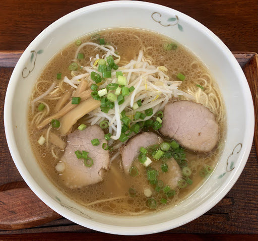 久しぶりに五日市の人気店の中華そば きくまに行ってきました。 平成21年6月に開店して、すでに12年ですが相変わらず店内は綺麗に清掃され暖簾の白さと同じく心地好い清潔さがあります。 そばを注文すると木製のお盆に中華そばが載って出てきました。 白系の丼に茶濁した豚骨醤油スープは気持ちオイル多めですかね。 チャーシュー、青ネギ、細モヤシ、そしてメンマですがここがポイント、出身店である陽気 横川店と同じくメンマが入ります。 店名も陽気 横川店の先代店主小川きくまさんの名前から、長男である御店主が名づけたそうです。 スープを啜るとあっさりだが好い旨味と醤油ダレが効いてます。 平ザルであげた柔らかな麺も優しく心地よいな。 戦後の広島に生まれた中華そばの歴史が、しまい、陽気、きくまと繋がり五日市に根づいたのは嬉しいですね。 今年は戦後76年になります、だからこそ中華そばの歴史をもう一度振り返ってみたいと思います。 広島のラーメンの歴史と中華そばをいろいろと探してみたいと思ってます。
