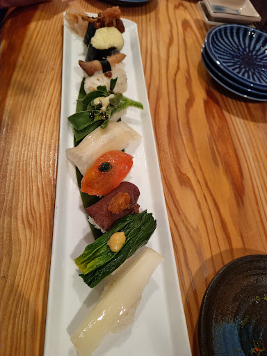 This place was exactly what I was looking for as my Japanese sushi experience, and my vegan partner was so happy with her vegetable sushi. I had my conveyor belt sushi experience in Tokyo, but this was a whole other level than I'd ever had. The staff was so friendly and helpful. Nobody spoke English, but they had a QR code with a menu that translated on my phone. The sushi was so darn good. They explain each piece to you (using Google Translate or photos) when it arrives. It was clear this meal was prepared with love. I would definitely recommend this restaurant and wish I could go again. My complements...