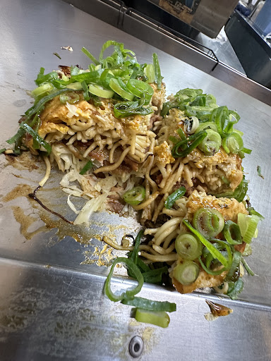 The noodles, sauce, egg, and all other ingredients compliment each other to make a pancake that is unusually delicious. Feel free to ask for more sauce as well.