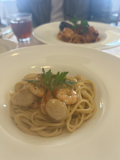 メイン料理は帆立と海老のクリームソースのパスタを注文。 提供までの時間も長過ぎず、女性にはちょうどいい適量であっという間に完食しました。 (男性には少ないと感じるかもしれません)