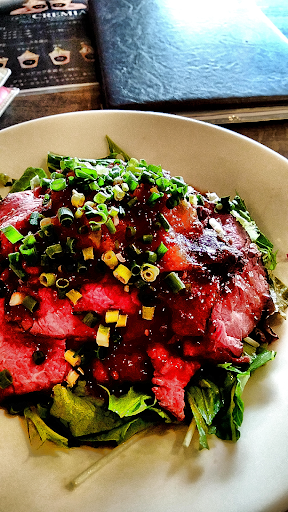 Read moreローストビーフ丼ランチ(サイズL)をいただきに初訪問。 少しお店の入り口が分かりづらかった。 入店後、カフェと美容院が合体したお店であることを知らなかったので美容院の受付に声をかけてしまった(笑) カフェは入口を入って右側です。 カフェ入店後、たくさんいたお客さんにこっちを見られるんだが、肝心の店員さんがなかなか案内に来てくれなく段々恥ずかしくなり、帰ろうかと思ってしまった。 メニューを見てローストビーフ丼を注文したが、どのタレにしますかとか全然聞かれず奥に行ってしまったのだけどあれいいのかな??って思った。 エスプレッソを食前にとお願いしたのに食後に来ました(笑) ローストビーフ丼は自分的にはコレじゃないと思いました。 お肉は美味しいんです。だけど野菜の主張が強い。大根おろしも強い。 ビーガン食みたい コッテリしたものが欲しかったけどあっさりの方が勝ってしまう。カフェなんでこうなっちゃうんですかね コレジャナイ感。 ローストビーフは焼き肉屋で注文すべきですね。