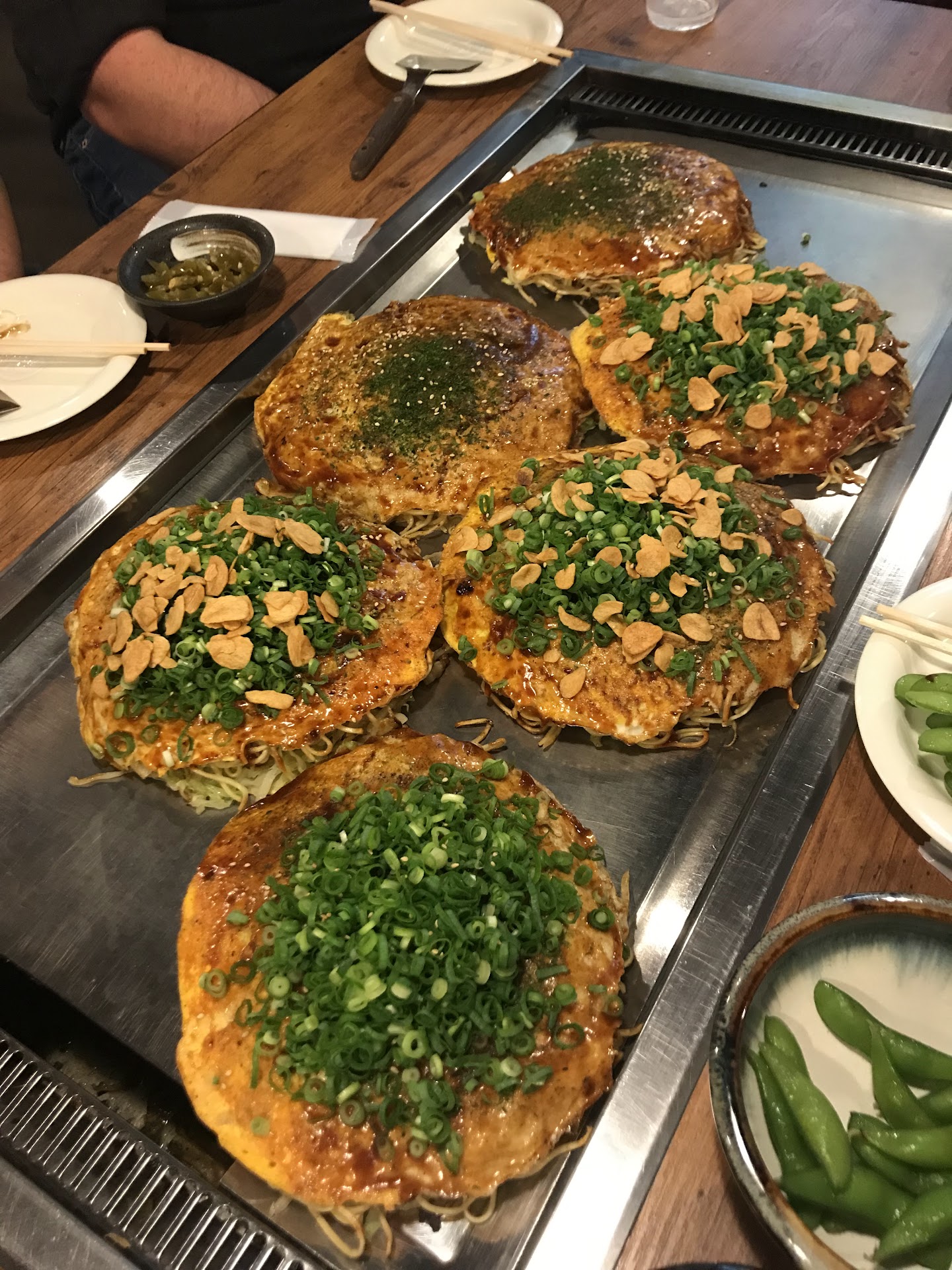 The prices are really justifiable because you are extremely full after. I paid ¥1510 total for the Special okonomiyaki and one side dish.
