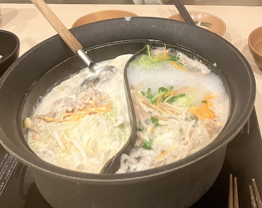 Finally a vegan friendly stop in Hiroshima. This shabu shabu is on 2nd floor. We had no wait but arrived shortly after they opened at 5pm. Leaving at 7pm it was more busy but there was no wait. Food is prepared by you at your table in a hot pot. We chose all vegetarian including, various mushrooms, spinach, onion, cabbage, lettuce, bean sprouts, mochi, noodles, rice, etc. Dessert was green matcha sherbert. Good food. Quick friendly service. All you can eat dinner for three was over 7,000 jpy. I left satisfied and will look forward to going back to this restaurant on a cold night...