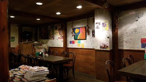 Read moreNot a bad atmosphere, very relaxed background music and friendly owner. The walls are scribbled on with quotes and some amazing drawings, adding to the flavour and seemingly mysterious background of the owner who reminds me of a sailor with many stories to tell. Alas, I was not privy to them, though I would have liked to have had the opportunity to strike up a chat with this Japanese oldtimer.