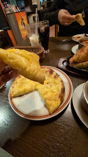 遅くに行ったのに、サラダは本当に新鮮で驚くほどシャキシャキ! ドレッシングも美味しかった! シーフードカレーは口どけまろやかでシーフード(貝、イカ、エビなど)もコロコロ入ってました🌸 バターチキンカレーは予想よりチキンがしっかり4つも入ってた! どちらも辛口を頼みましたが、そこまで辛いわけではなかったので、辛口が平気な方は1番辛いのにしても良さそう。 次回いちばん辛いのにしてみたい笑笑 カレーは辛い中でもはちみつのような優しくほどよい甘さがありました。 タンドリーチキンかな?付いてたチキンはジューシーで、ぷりぷり!お肉の厚みもありました! ハニーチーズナンは少し生地が固め?(チーズが入ってるからだと思う) とても食べ応えがあって、1日何も食べずに行っても1枚でお腹いっぱいに…笑 冷めちゃったらチーズ少し固くなっちゃうので熱いうちに食べるといいかもです✨ お腹いっぱいになって、持ち帰ろうと思ったけど美味しくて口が止まらなかった笑 ラッシーは爽やかで程よい甘さ🤍 だからむつこくなってもラッシーを頼んでたらでリフレッシュできると思います✿·͜·