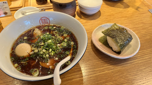 醤油系の気分だったので、黒うまを注文。セットに餃子とおにぎりを。 (黒うまだけ、麺の固さは固定です。)