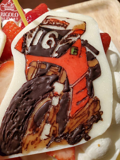 ムースじゃないチョコケーキも食べました。 柔らかいタルトが台になってて、その上にクッキーの丸っこいのがいくつか周りについて、てっぺんにチョコクリームをちょこんと乗せた奴でした。 クッキーがサクサクで、タルトはしっとり1つのケーキで2つの食感が楽しめる感じ。 とても甘くて美味しい。