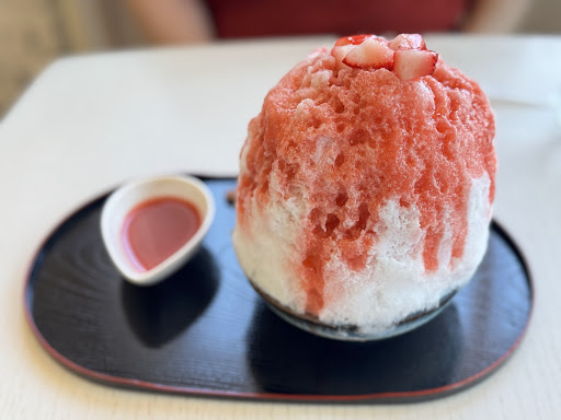 お盆過ぎてもまだ暑い日が続いており、かき氷が食べたくなりました。家の近所で良いお店がないか調べていたらここのお店で「かき氷始めました」と言う情報を見つけて早速伺いました。 このお店は街のケーキ屋さんで、近所と言う事もありたまに来店していました。 お店の中にイートインスペースがある事は知っていました。 お店に到着してかき氷のメニューを眺めていましたが、いちごやマンゴー、メロン、桃などがベースのものでした。 宇治金時+白玉を希望していましたが流石に用意がありませんでした。 妻は苺とココナッツミルクで私は苺とピスタチオ+エスプーマバニーユを注文味ました。 かき氷の中には冷凍苺が入っていてました。 また追いシロップが付いているので食べ進んでいるうちにシロップが不足した場合にかけ足す事が出来るのは有り難かったです。 かき氷の氷もきめ細かくて舌触り良く、お口の中でパッと解ける感じがなかなか良かったです。 最後まで食べ進んでもシロップが切れる事もなく最後まで美味しく頂けました。 我々以外にもお客様が来店されており人気の高いお店と言う印象を受けました。 今回はかき氷でしたが、お店のケーキとコーヒーで今度...